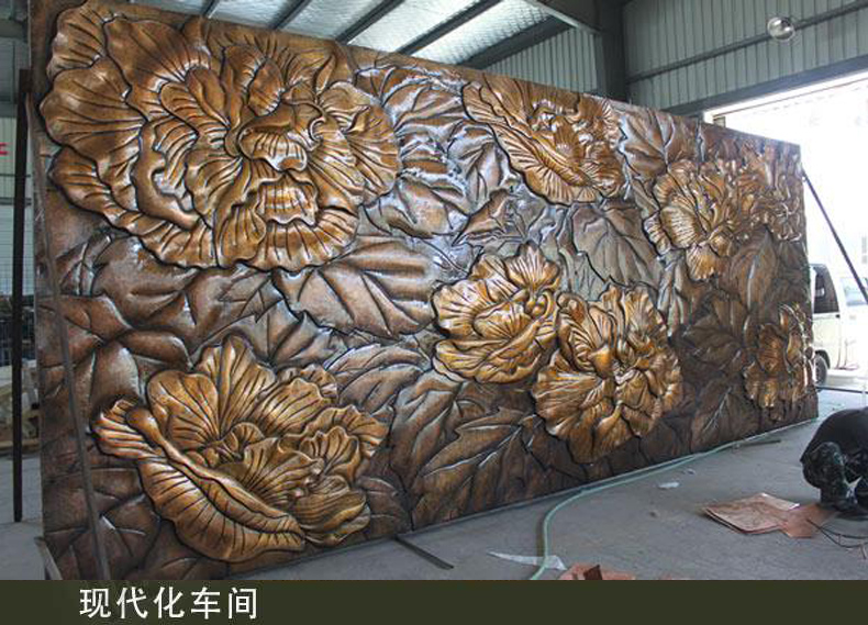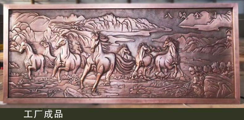 銅浮雕是浮雕藝術(shù)的一種,設(shè)計(jì)好圖案后,按照一定的工藝流程,以特制的工具和特定的技法,在金屬板上加工出千變?nèi)f化的浮雕狀圖案。