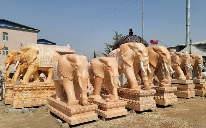 大象是一種高大威猛的動物,但是它的性情比較溫和,所以也深受人們的喜愛,石雕大象也代表著強大、和平、吉祥、幸福美滿的寓意,石雕大象具有聚財、招財、守財?shù)淖饔?,所以很多商鋪、酒店門口都會擺放一對石雕大象,除此之外,石雕大象還有裝飾作用,擺在門口顯得很有氣勢。